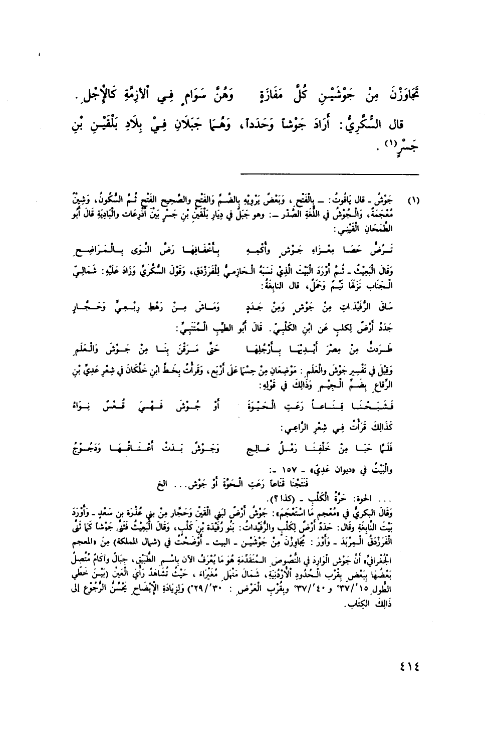 قال السكري: أراد جوشاً وحدداً، وهما جبلان في بلاد بلقين بن جسرٍ.