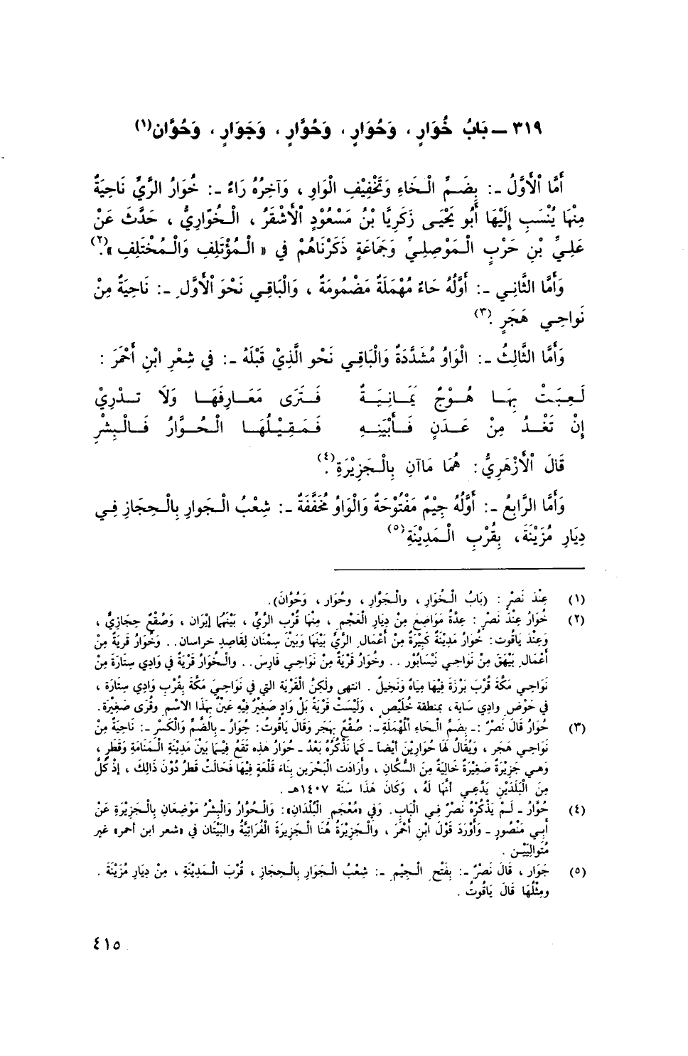 319 - بابُ خُوَارٍ، وَحُوَارٍ، وَحُوَّارٍ، وَجَوَارٍ، وَحُوَّان