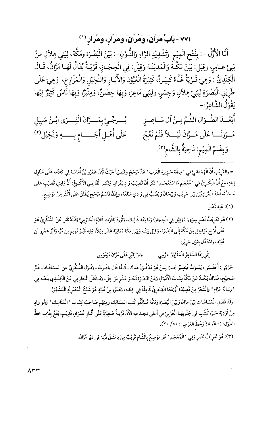 مَرَرْنَا عَلَى مَرَّانَ لَيْلاً فَلَمْ نَعُجْ ... عَلَى أَهْلِ آجَامٍ بِهِ وَنَخِيْل