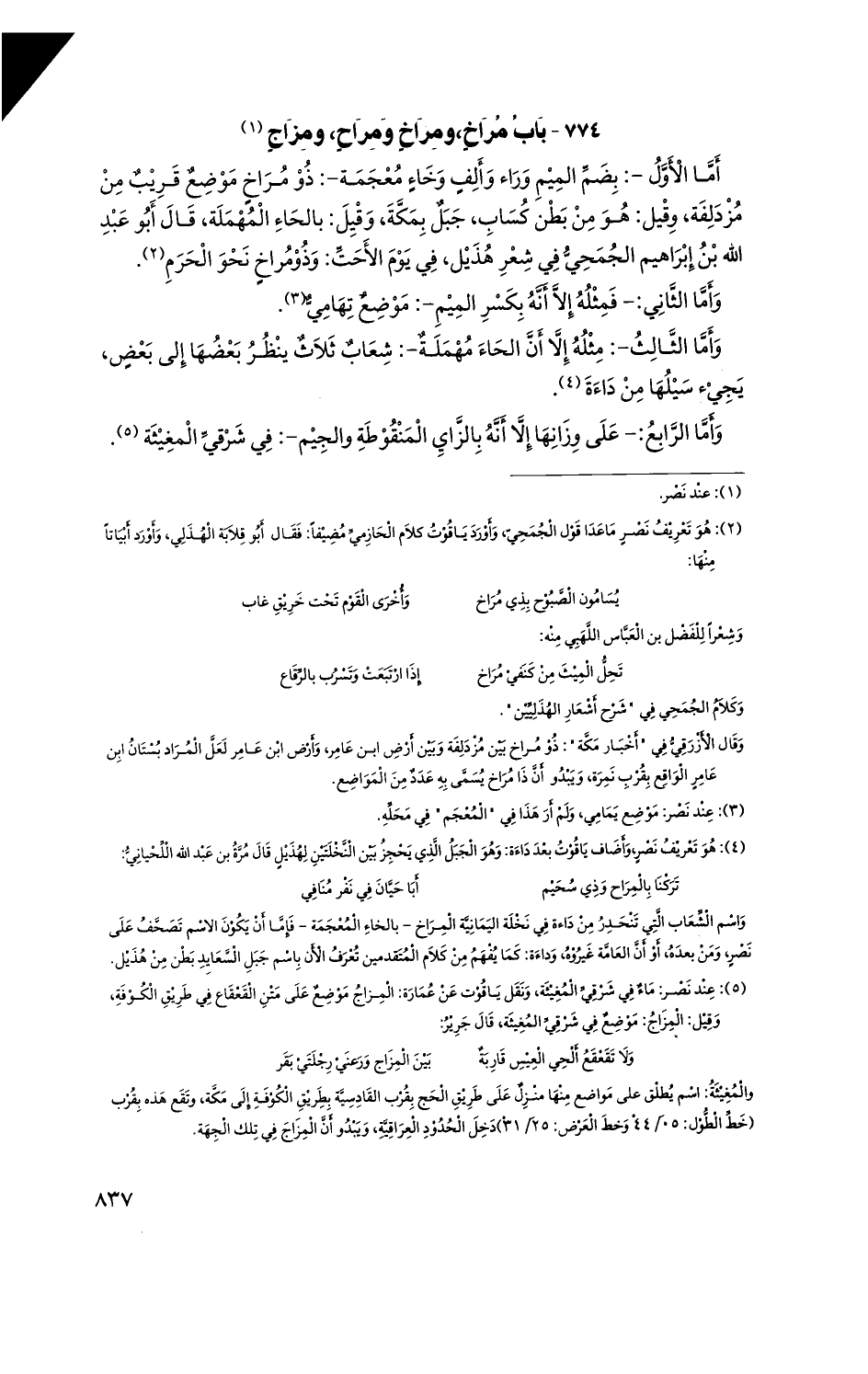 774 - بابُ مُراخٍ، ومِراخٍ ومِراحٍ، ومِزاجٍ
