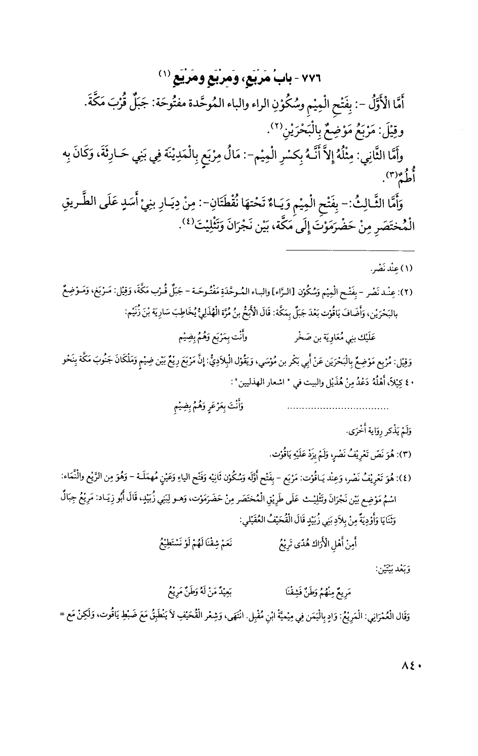 أما اْلأَوَّلُ -: بِفَتْحِ الميم وسكون الراء والباء المُوْحَّدَة مَفْتُوحةٌ: جبل قُربَ مَكَّة.