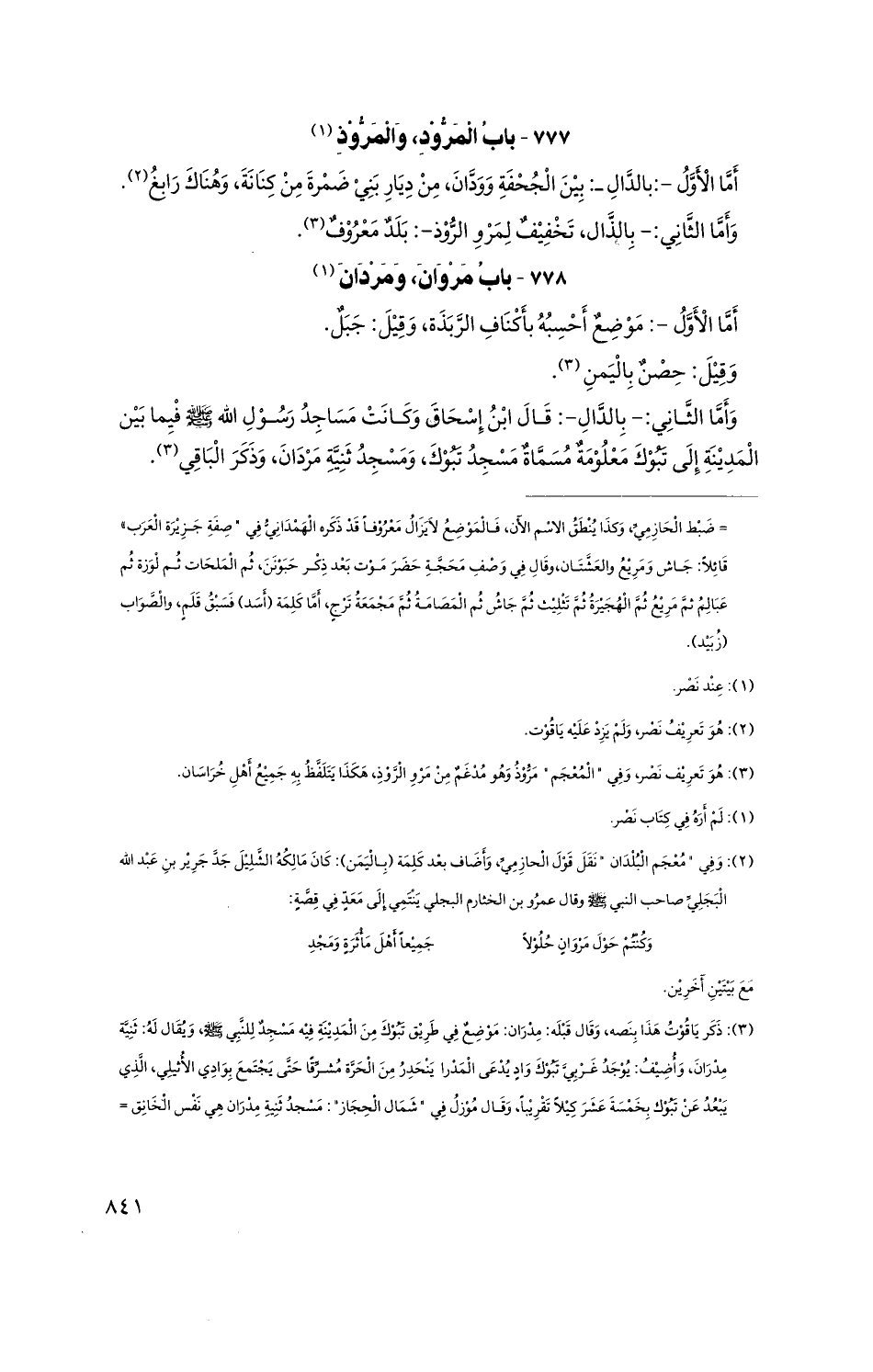 وأما الثَّاني: - بالدال -: قال ابن إسحاق وكانت مساجد رَسُوْل الله صَلَّى اللهُ عَلَيْهِ وَسَلَّمَ فيما بين المدينة إلى تبوك معلومة مسماة مسجد تبوك، ومسجد ثنية مردان، وذكر الباقي.