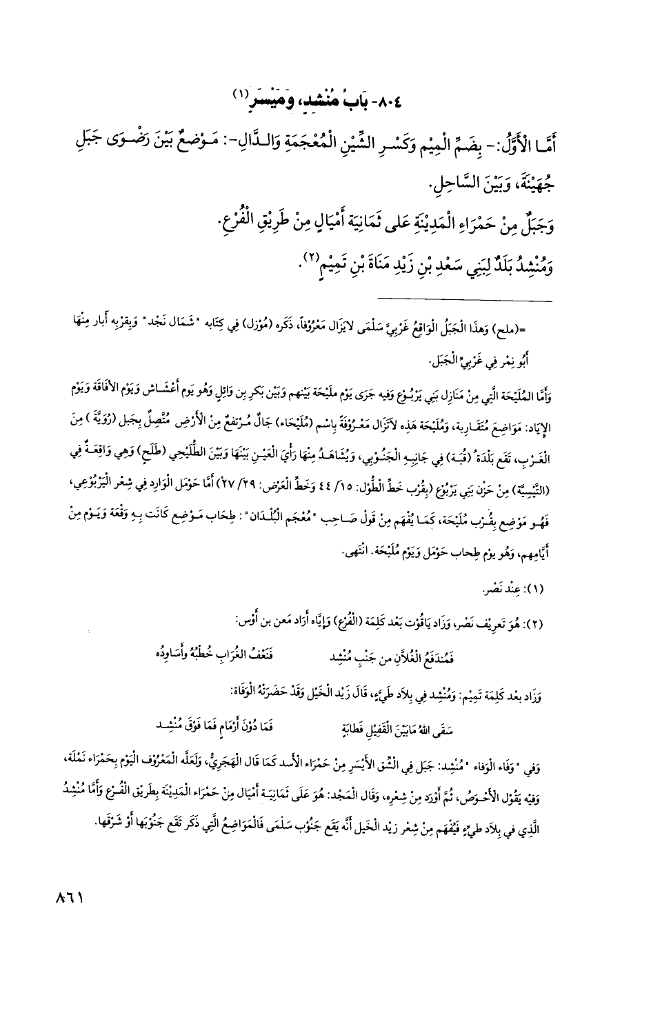 ومنشد بلد لبني سعد بن زيد مناة بن تميم.