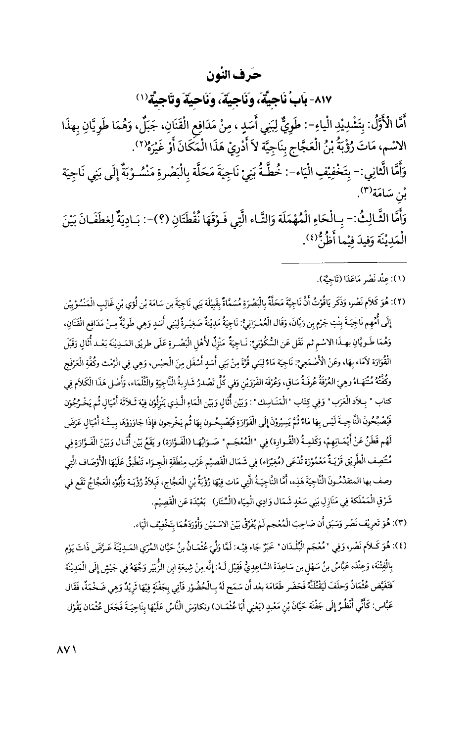 817 - بابُ نَاجِيْة، ونَاجِيةَ، ونَاحِيَة وتَاجِيَّة