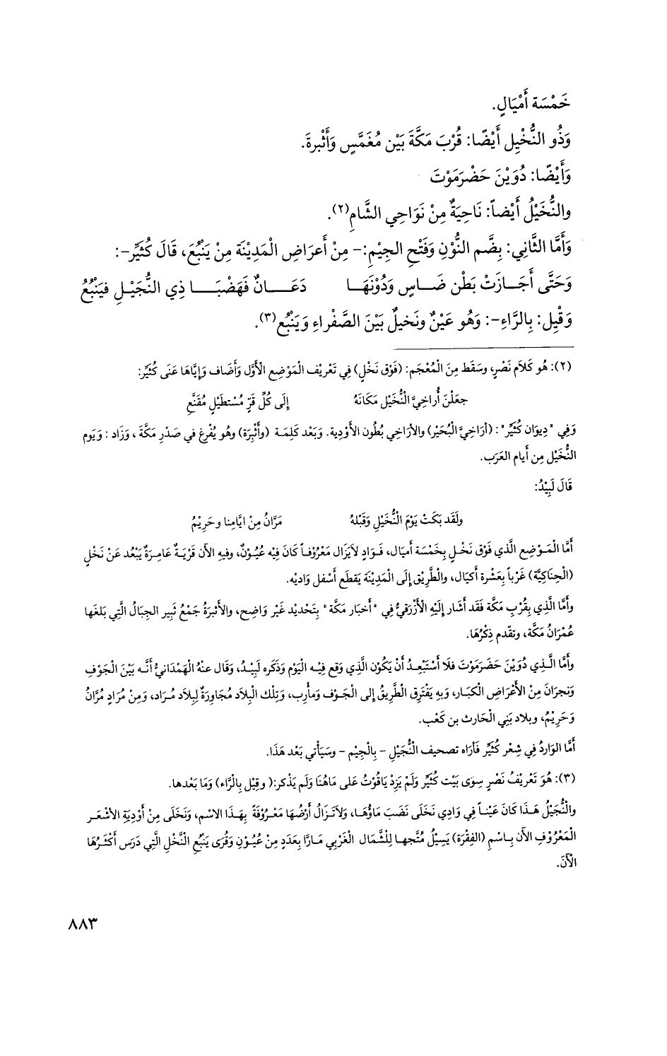 وأما الثَّاني: بِضَمِّ النُوْن وفتح الجيم: - من أعراض المدينة من ينع، قال كثير -: