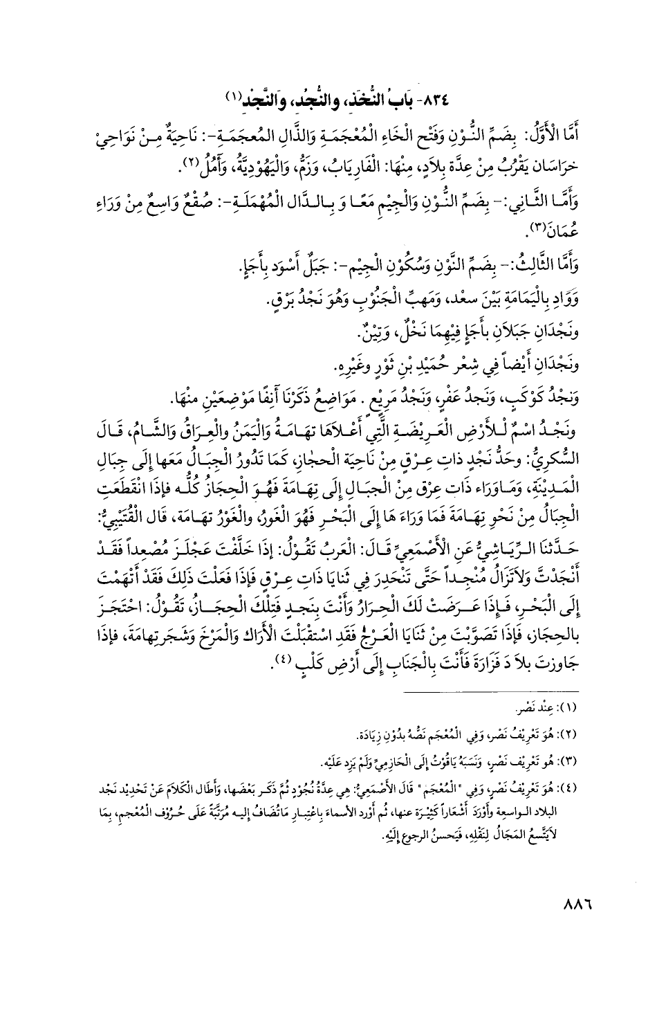 وأما الثَّاني: - بِضَمِّ النُوْن والجيم معاً وبالدال المُهْمَلَة -: صقعٌ وساعٌ من وراء عُمان.
