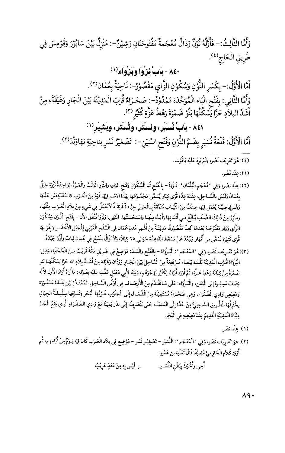 أما اْلأَوَّلُ: - بِكَسْرِ النُوْن وسكون الزاي مقصور -: ناحية بعمان.