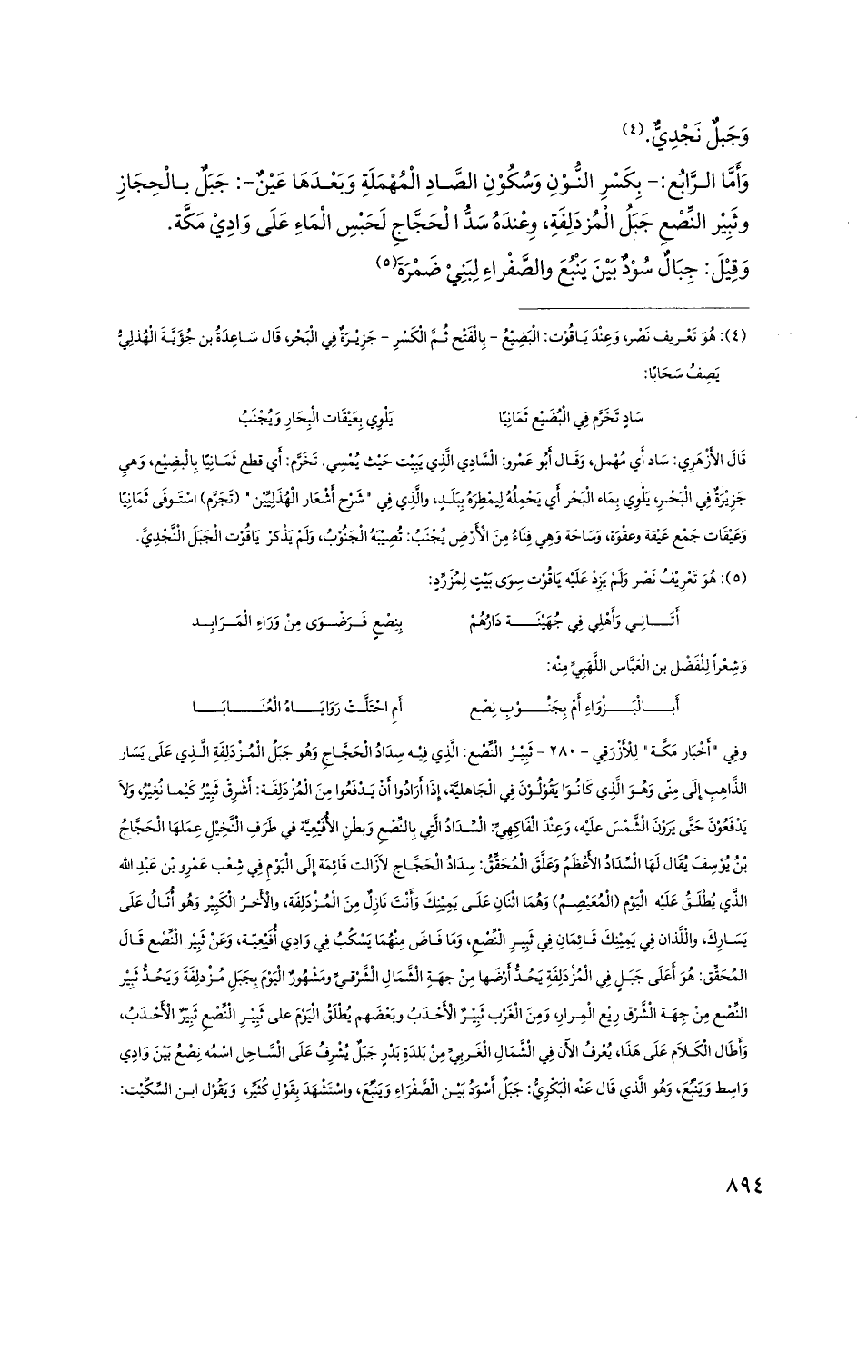 وأما الرَّابع: - بِكَسْرِ النُوْن وسكون الصاد المُهْمَلَة وبَعْدَهَا عينٌ -: جبلٌ بالحجاز وثبير النصع جبل المزدلفة، وعنده سد الحجاج لحبس الماء على وادي مَكَّة.