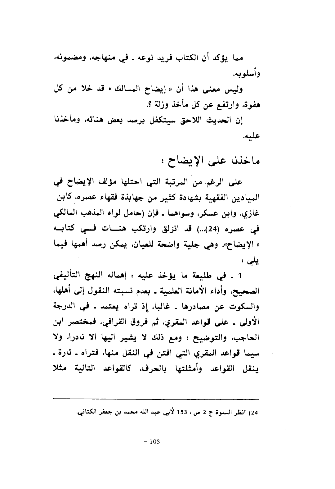 وليس معنى هذا أن "إيضاح المسالك" قد خلا من كل هفوة، وارتفع عن كل مأخذ وزلة؟ .