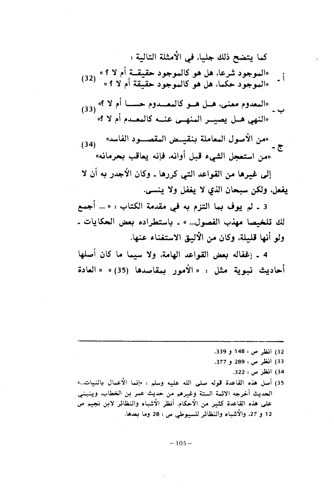 4 - إغفاله بعض القواعد الهامة، ولا سيما ما كان أصلها أحاديث نبوية مثل: "الأمور بمقاصدها (¬35) " "العادة