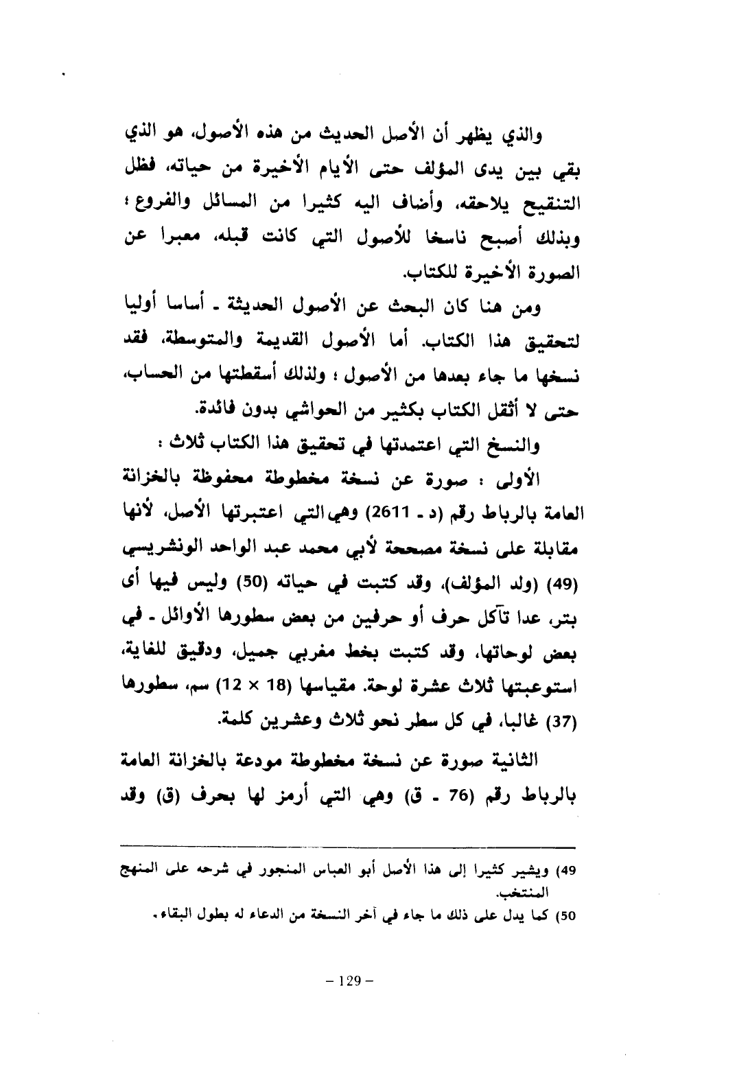 (¬49) ويشير كثيرا إلى هذا الأصل أبو العباس المنجور في شرحه على المنهج المنتخب.