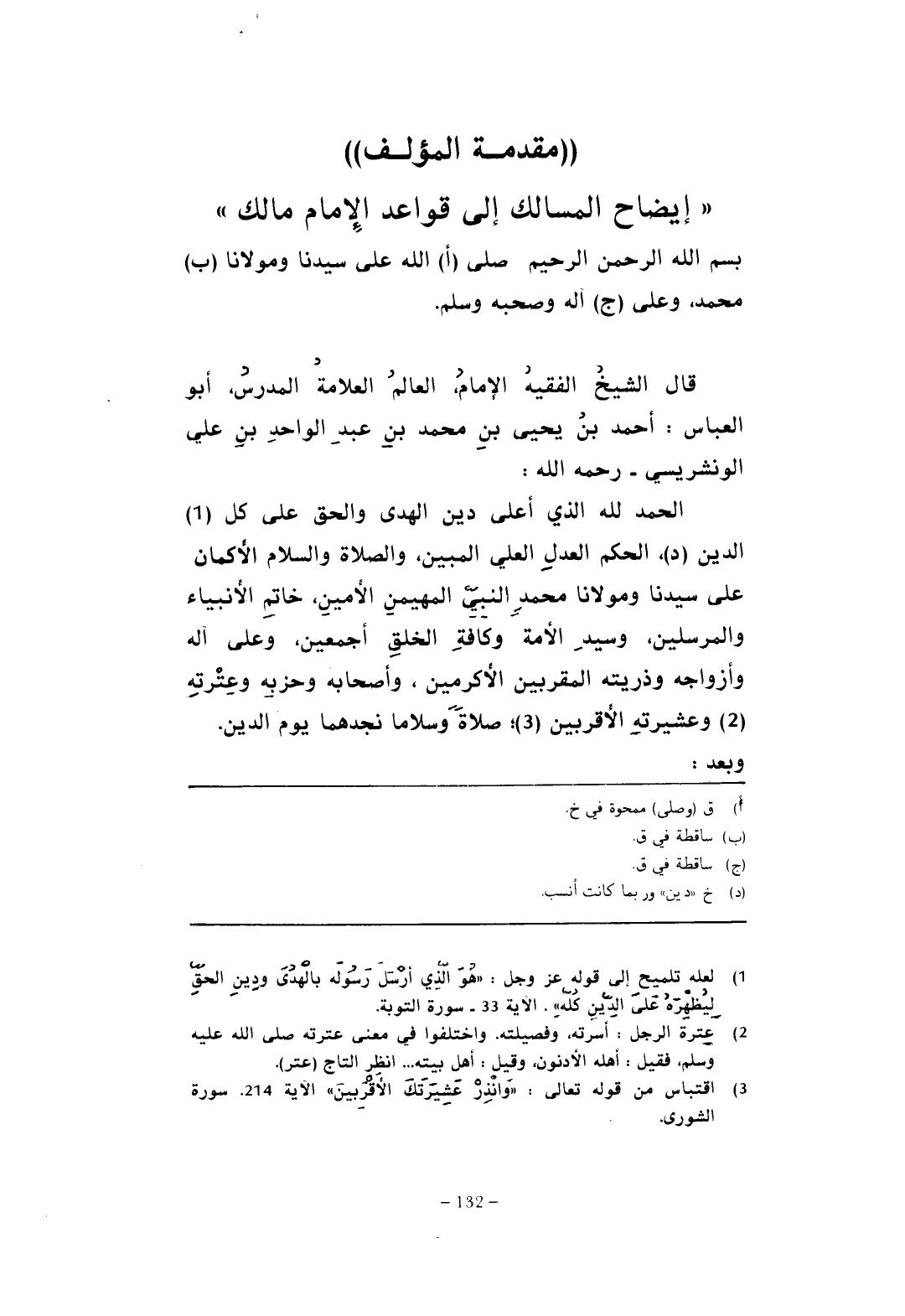 قال الشيخ الفقيه الإمام العالمُ العلامة المدرس، أبو العباس: أحمد بن يحيى بنِ محمد بن عبد الواحدِ بنِ علي الونشريسي -رحمه الله-: