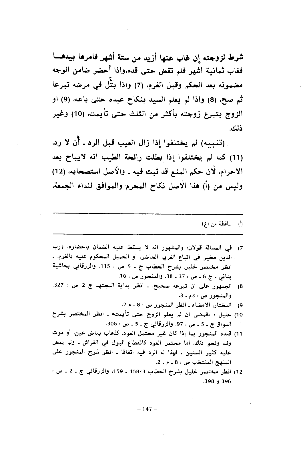 (¬12) انظر مختصر خليل بشرح الحطاب 3/ 158 - 159، والزرقاني ج - 2 - ص: 396 و 398.