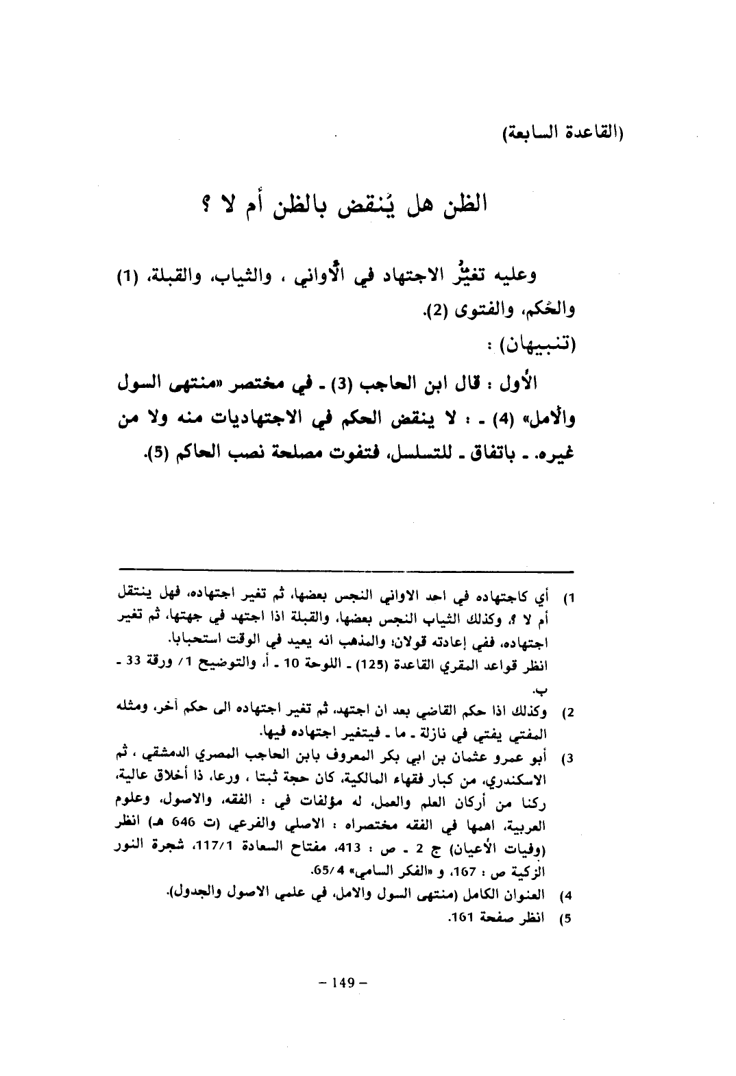 (¬3) أبو عمرو عثمان بن أبي بكر المعروف بابن الحاجب المصري الدمشقي، ثم الإسكندري، من كبار فقهاء المالكية، كان حجة ثبتًا، ورعًا، ذا أخلاق عالية، ركنًا من أركان العلم والعمل، له مؤلفات في: الفقه، والأصول، وعلوم العربية، أهمها في الفقه مختصراه: الأصلي والفرعي (ت 646 هـ) انظر (وفيات الأعيان) ج 2 - ص: 413، مفتاح السعادة 1/ 117، شجرة النور الزكية ص: 167، و"الفكر السامي" 4/ 65.