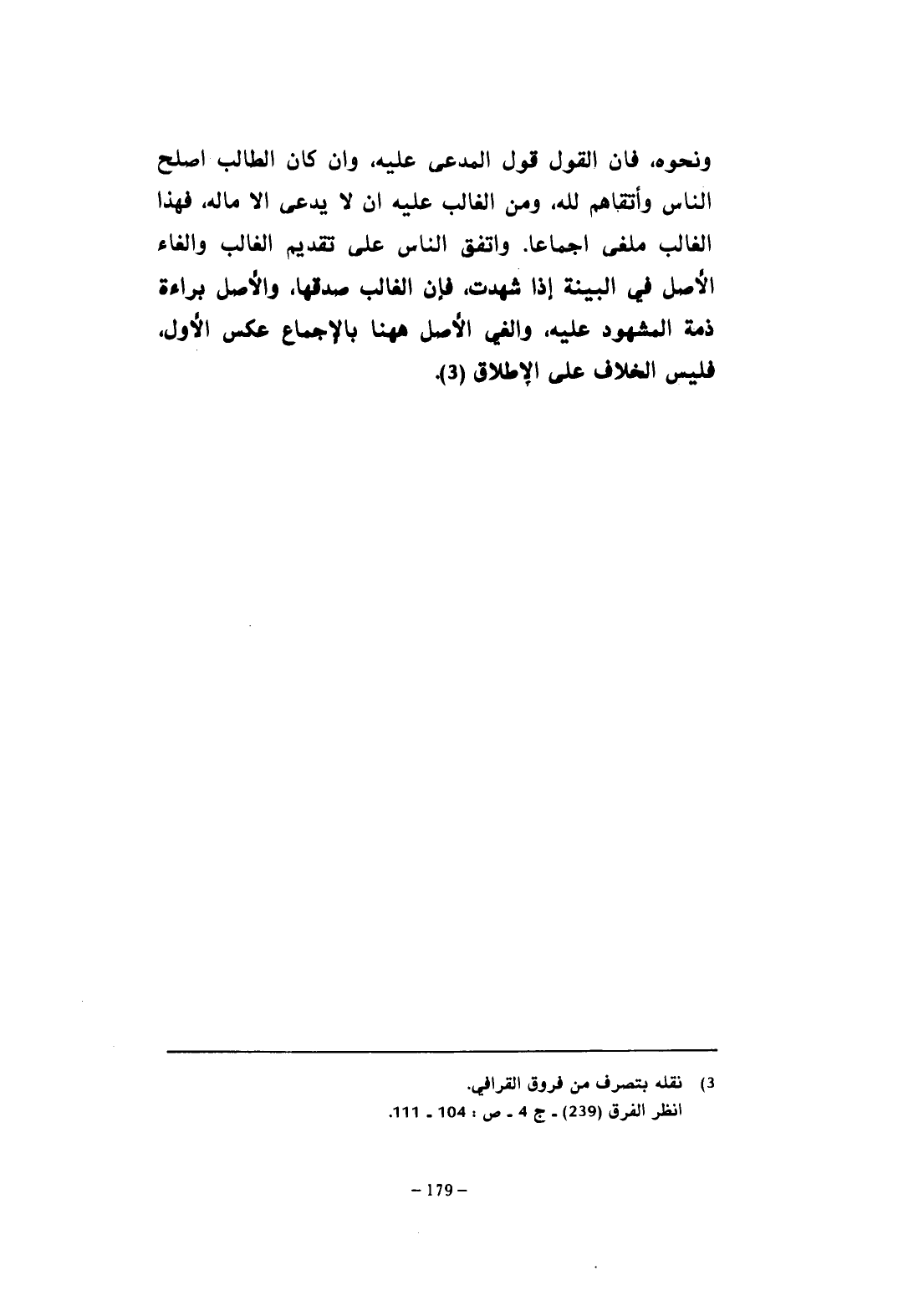ونحوه، فإن القول قول المدعى عليه، وإن كان الطالب أصلح الناس وأتقاهم لله، ومن الغالب عليه أن لا يدعى إلا ماله، فهذا الغالب ملغى إجماعا. واتفق الناس على تقديم الغالب وإلغاء الأصل في البينة إذا شهدت، فإن الغالب صدقها، والأصل براءة ذمة المشهود عليه، وألغي الأصل ها هنا بالإجماع عكس الأول، فليس الخلاف على الإطلاق (¬3).