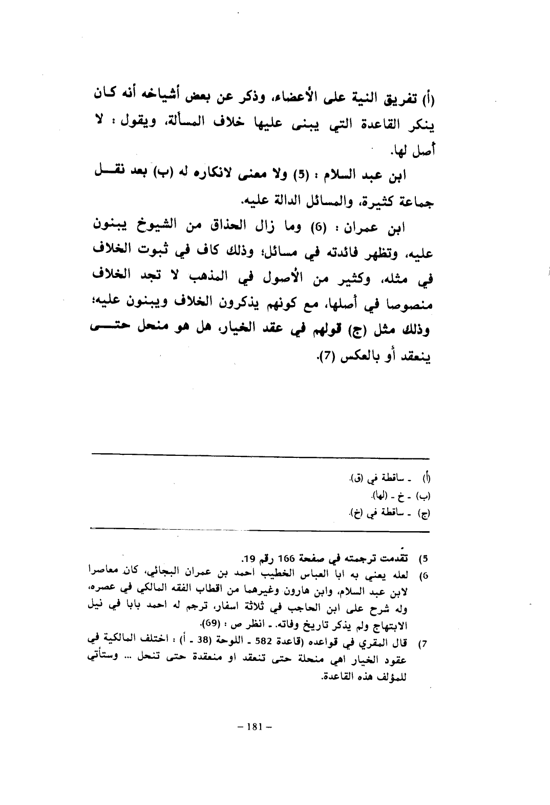 (¬7) قال المقري في قواعده (قاعدة 582 - اللوحة (38 - أ): اختلف المالكية في عقود الخيار أهي منحلة حتى تنعقد أو منعقدة حتى تنحل ... وستأتي للمؤلف هذه القاعدة.