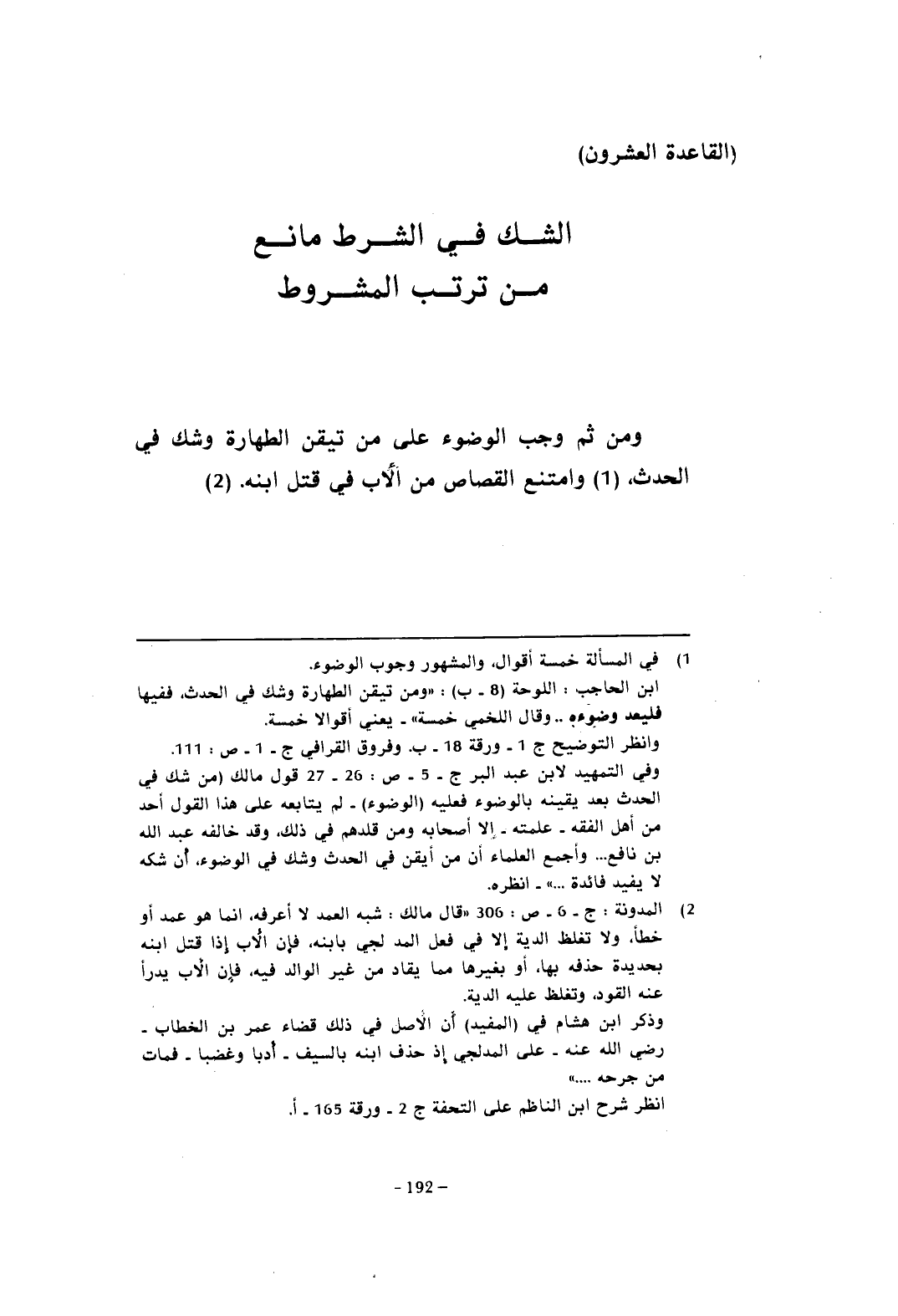 (القاعدة العشرون) الشك في الشرط مانع من ترتب المشروط