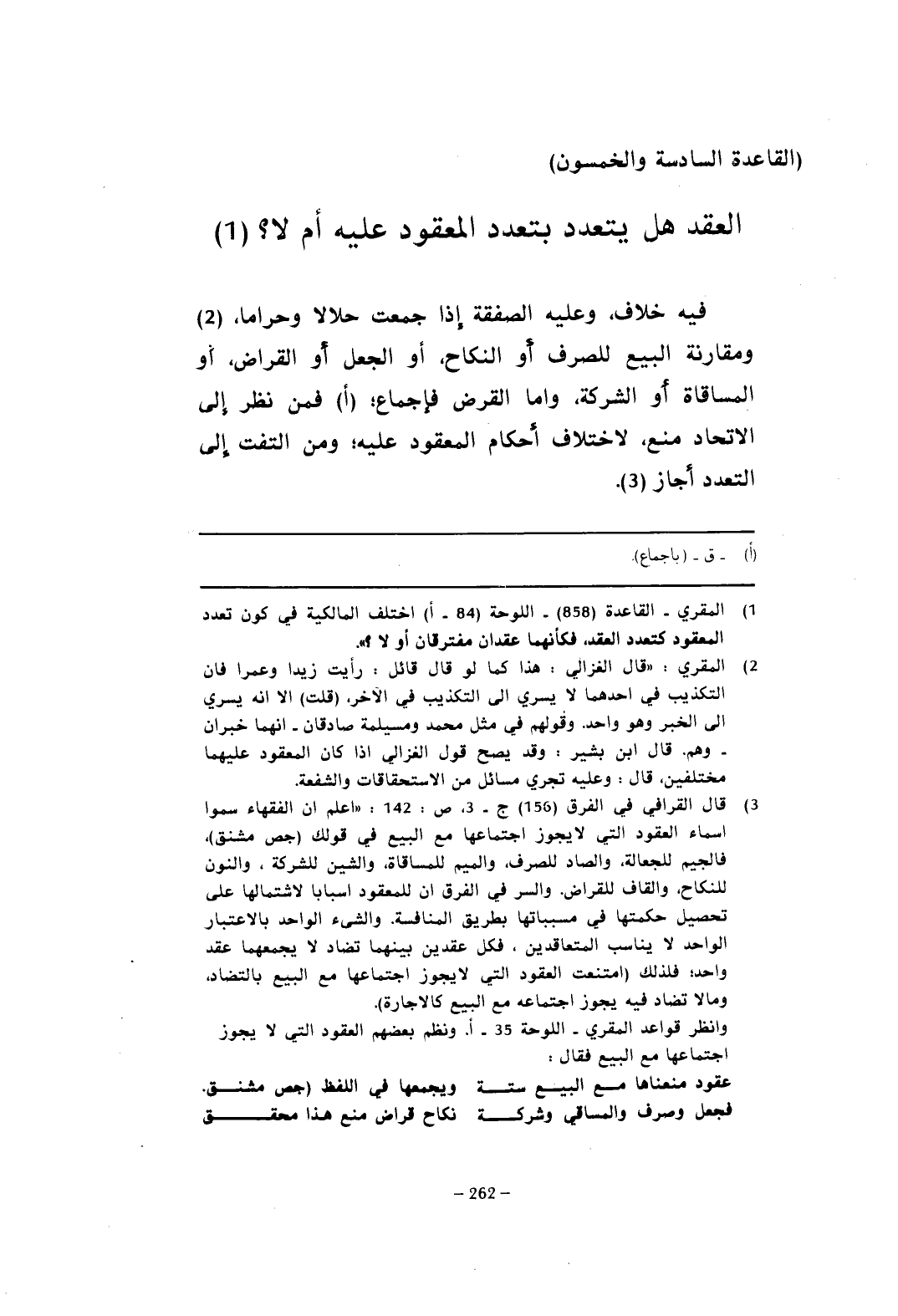 (القاعدة السادسة والخمسون) العقد هل يتعدد بتعدد المعقود عليه أم لا؟ (¬1)