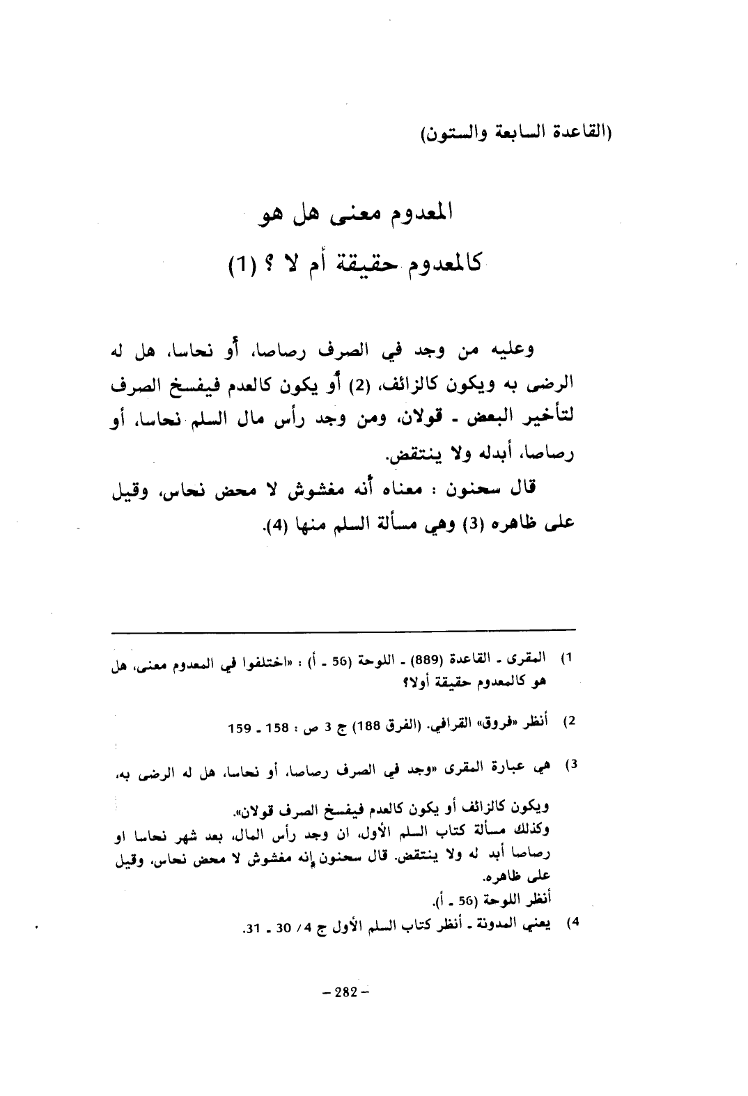 (القاعدة السابعة والستون) المعدوم معنى هل هو كالمعدوم حقيقة أم لا؟ (¬1)
