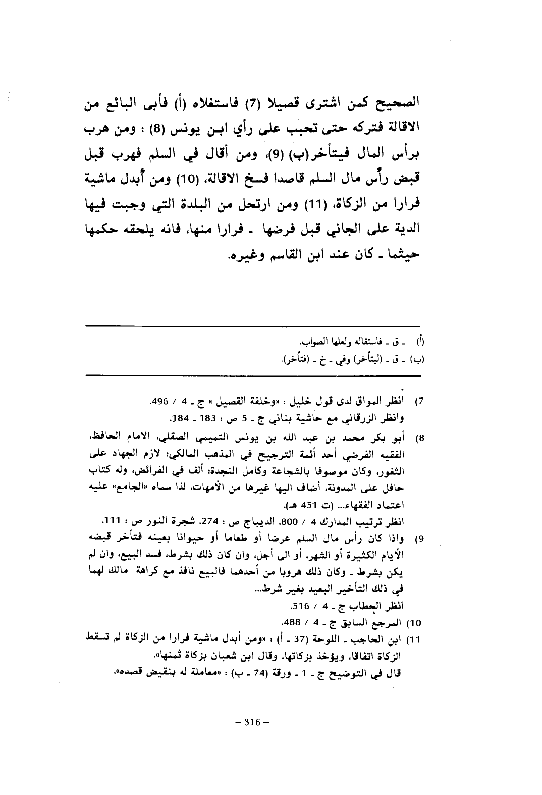 (¬7) انظر المواق لدى قول خليل: "وخلفة القصيل" ج -4/ 496.