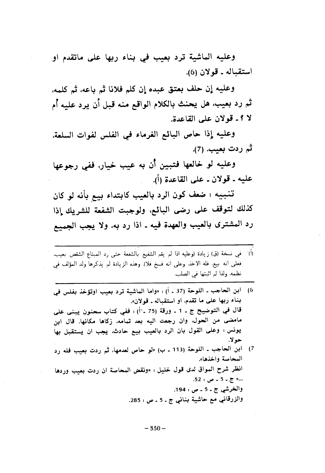 (¬6) ابن الحاجب - اللوحة (37 - أ): "وأما الماشية ترد بعيب أو تؤخذ بفلس في بناء ربها على ما تقدم، أو استقباله - قولان".