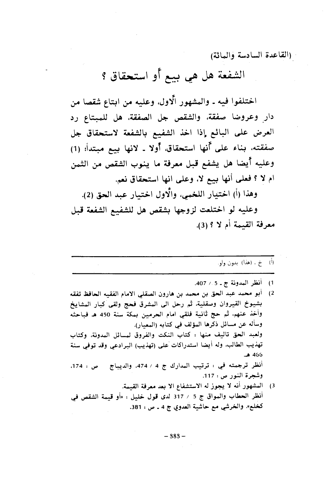(القاعدة السادسة والمائة) الشفعة هل هي بيع أو استحقاق؟