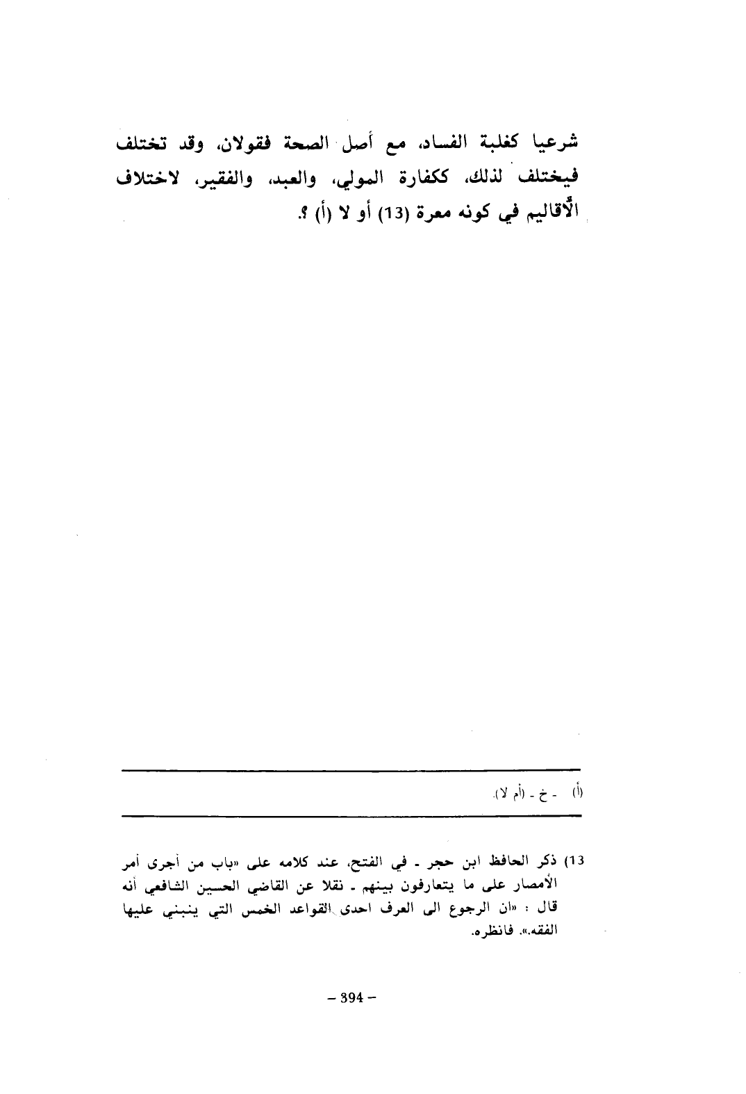 (¬13) ذكر الحافظ ابن حجر - في الفتح، عند كلامه على "باب من أجرى أمر الأمصار على ما يتعارفون بينهم - نقلا عن القاضي الحسين الشافعي أنه قال: "أن الرجوع إلى العرف إحدى القواعد الخمس التي ينبني عليها الفقه.". فانظره.