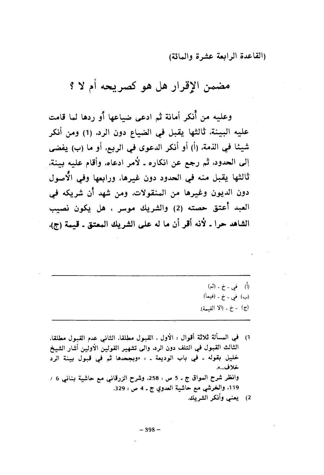 (القاعدة الرابعة عشرة والمائة) مضمن الإقرار هل هو كصريحه أم لا؟