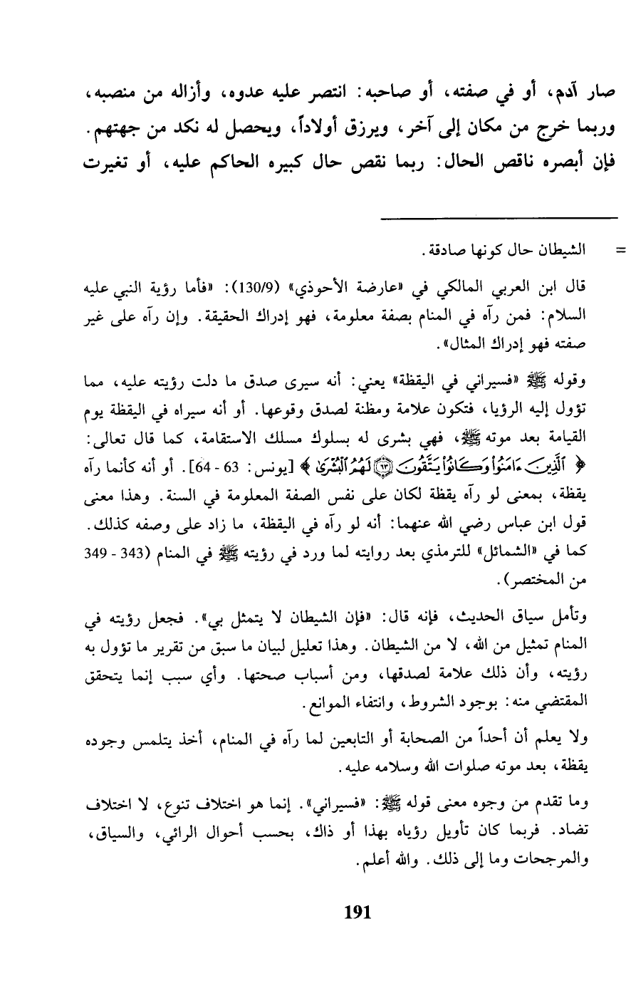 صَار آدم، أَو فِي صفته، أَو صَاحبه: انتصر عَلَيْهِ عدوه، وأزاله من منصبه، وَرُبمَا خرج من مَكَان إِلَى آخر، ويرزق أَوْلَادًا، وَيحصل لَهُ نكد من جهتهم. فَإِن أبصره نَاقص الْحَال: رُبمَا نقص حَال كَبِيرَة الْحَاكِم عَلَيْهِ، أَو تَغَيَّرت