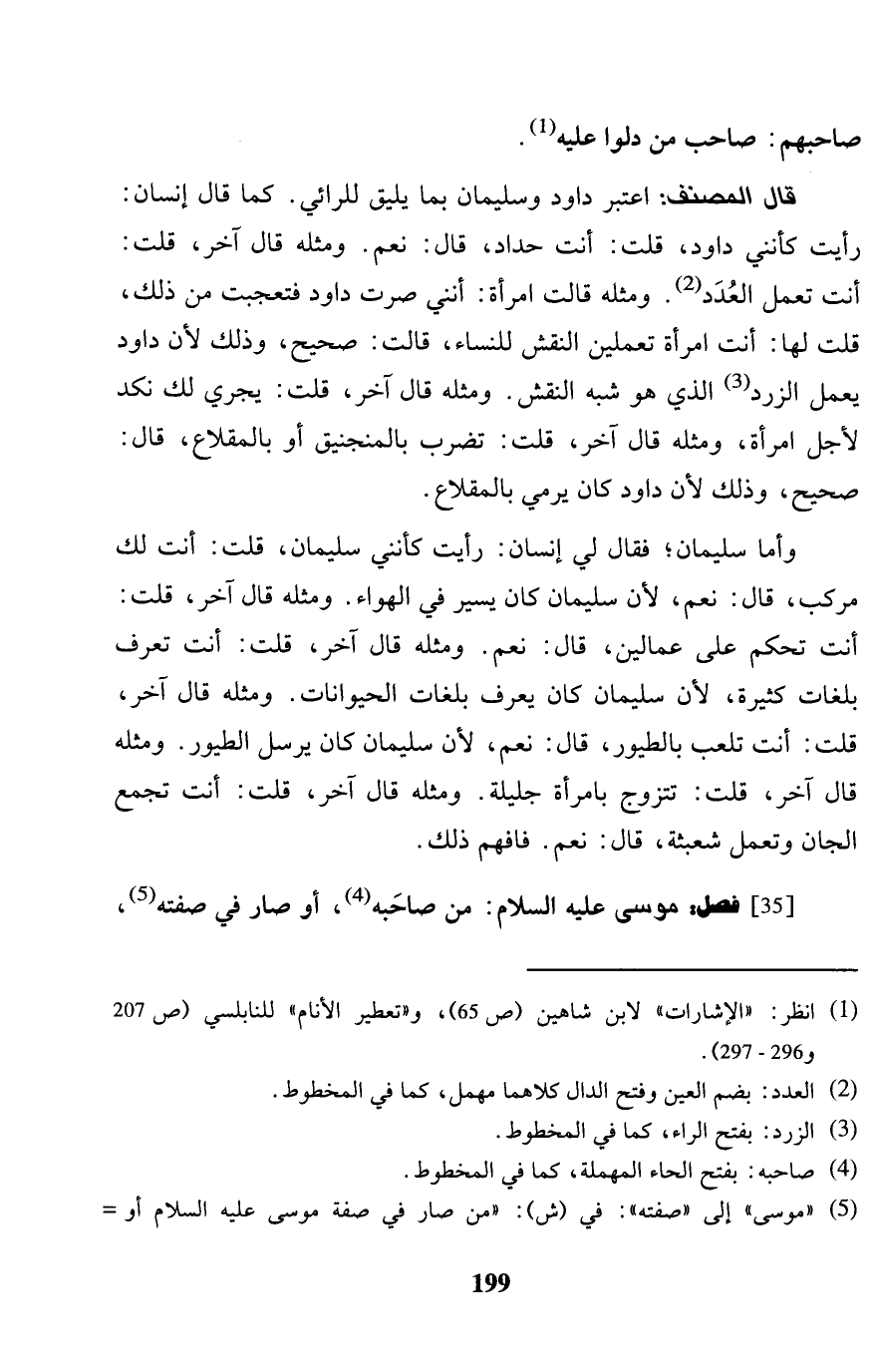 [35] فصل: مُوسَى عَلَيْهِ السَّلَام: من صَاحبه، أَو صَار فِي صفته،