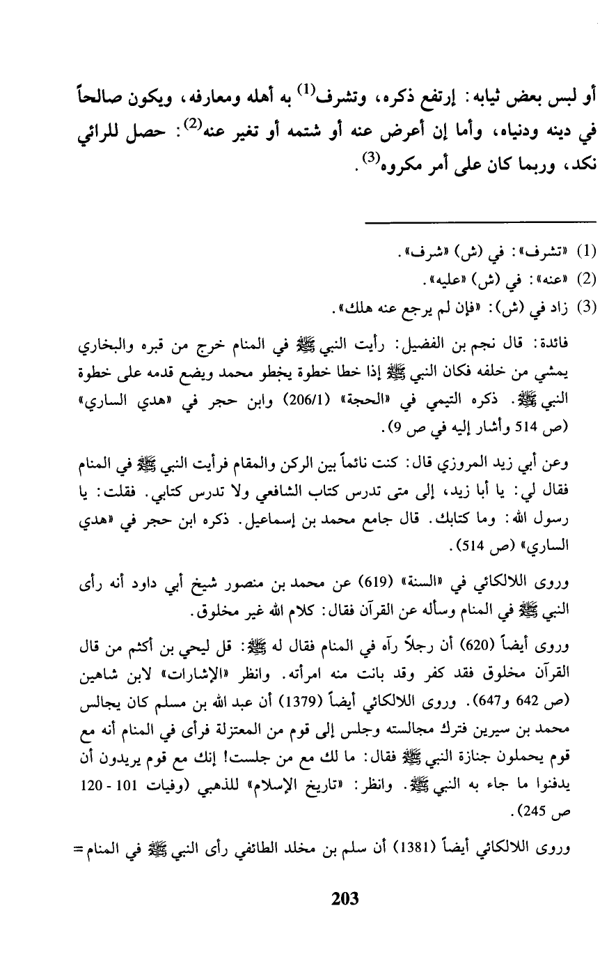 أَو لبس بعض ثِيَابه: إرتفع ذكره، وتشرف بِهِ أَهله ومعارفه، وَيكون صَالحا فِي دينه ودنياه، وَأما إِن أعرض عَنهُ أَو شَتمه أَو تغير عَنهُ. حصل للرائي نكد، وَرُبمَا كَانَ على أَمر مَكْرُوه.