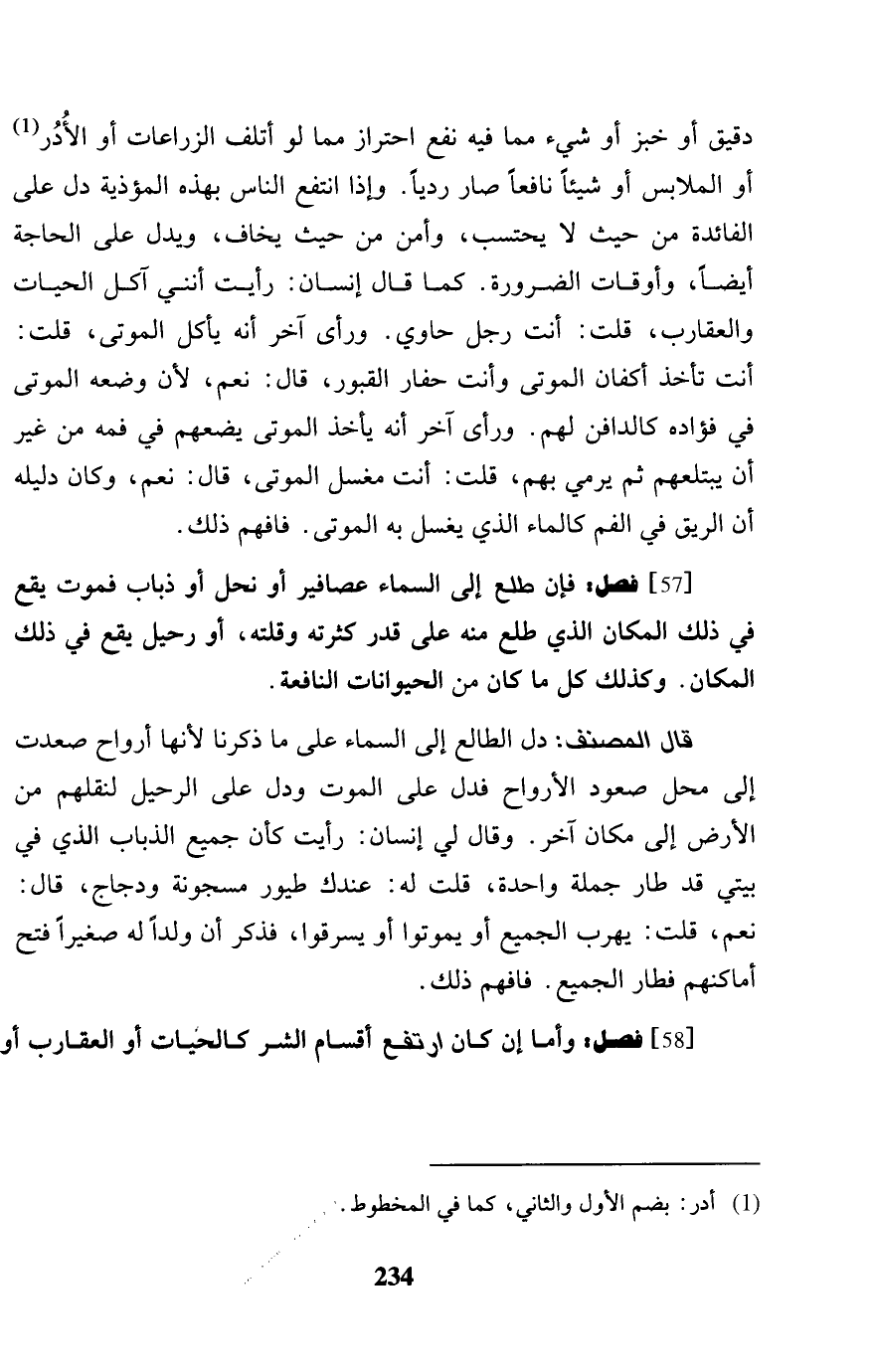 [58] فصل: وَأما إِن كَانَ ارْتَفع أَقسَام الشَّرّ كالحيات أَو العقارب أَو