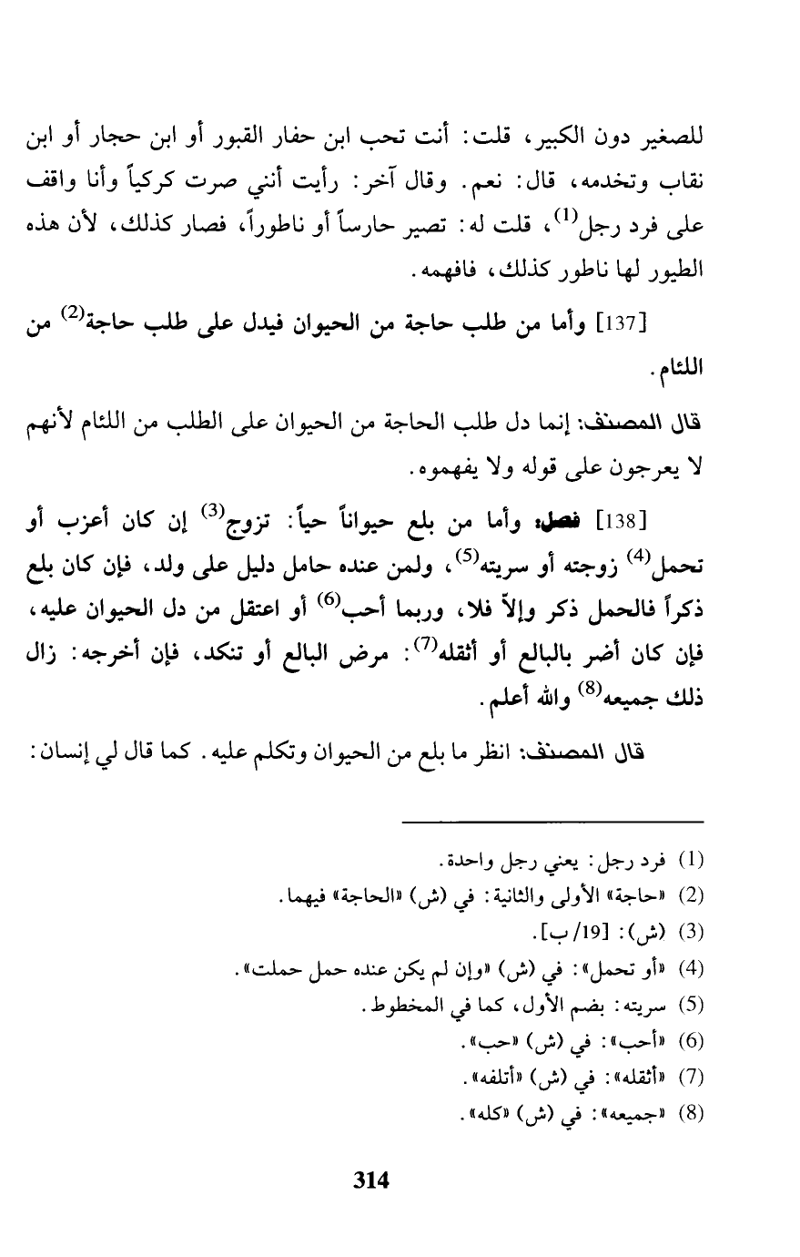 [137] وَأما من طلب حَاجَة من الْحَيَوَان فَيدل على طلب حَاجَة من اللئام. قَالَ المُصَنّف: إِنَّمَا دلّ طلب الْحَاجة من الْحَيَوَان على طلب من اللئام لأَنهم لَا يعرجون على قَوْله وَلَا يفهموه.