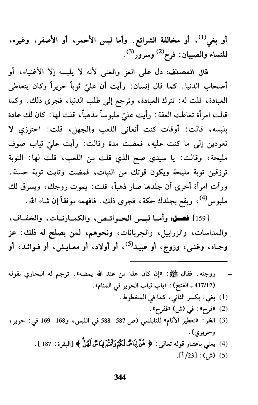 [159] فصل: وَأما لبس الحوائص، والكمارنات، والخفاف، والمداسات، والزرابيل، والجربانات، وَنَحْوهم، لمن يصلح لَهُ ذَلِك: عز وجاه، وغنى، وَزوج، أَو عبيد، أَو أَوْلَاد، أَو معايش، أَو فَوَائِد، أَو