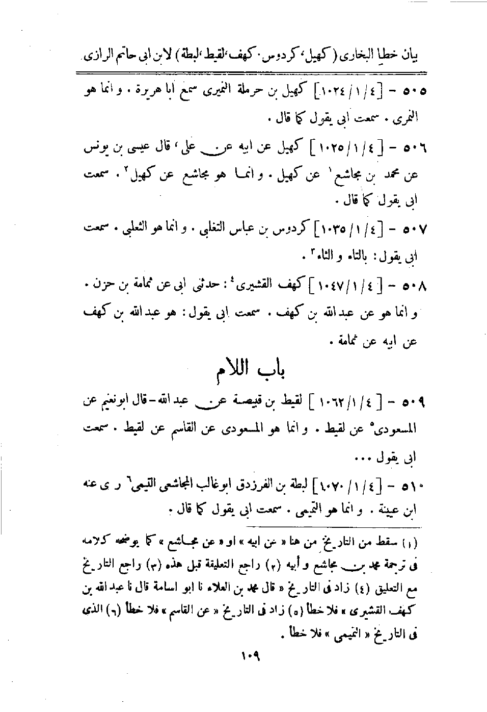 (1) سقط من التاريخ من هنا " عن ابيه " أو " عن مجاشع " كما يوضحه كلامه في ترجمة محمد بن مجاشع وأبيه (2) راجع التعليقة قبل هذه (3) راجع التاريخ مع التعليق (4) زاد في التاريخ " قال محمد بن العلاء نا أبو اسامة قال نا عبد الله بن كهف القشيرى " فلا خطأ (5) زاد في التاريخ " عن القاسم " فلا خطأ (6) الذى في التاريخ " التميمي " فلا خطأ.