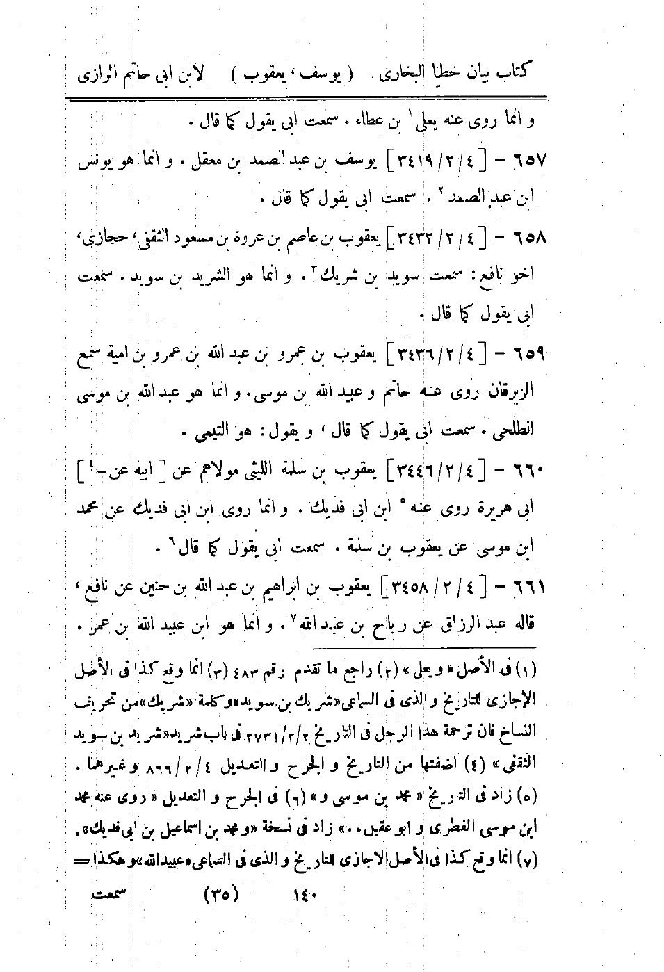 658 -[4 / 2 / 3432] يعقوب بن عاصم بن عروة بن مسعود الثقفى، حجازى، اخو نافع: سمعت سويد بن شريك (3) .