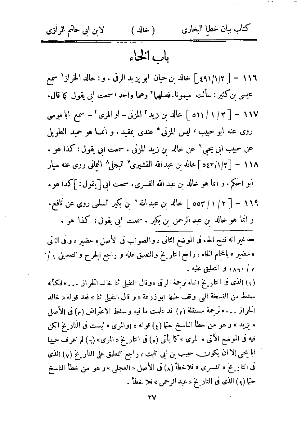 باب الخاء 116 -[2 / 1 / 491] خالد بن حيان أبو يزيد الرقى.
