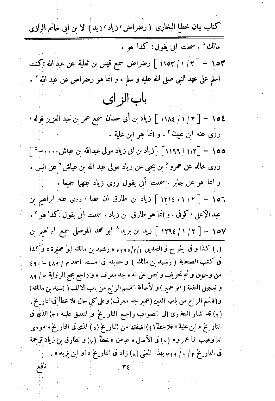 باب الزاى 154 -[2 / 1 / 1184] زياد بن أبى حسان سمع عمر بن عبد العزيز قوله، روى عنه ابن عيينة (3) .