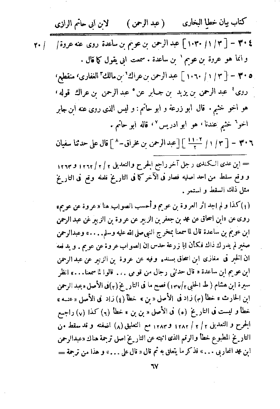 304 -[3 / 1 / 1030] عبد الرحمن بن عويم بن ساعدة روى عنه عروة / 20 وانما هو عروة بن عويم (1) بن ساعدة.