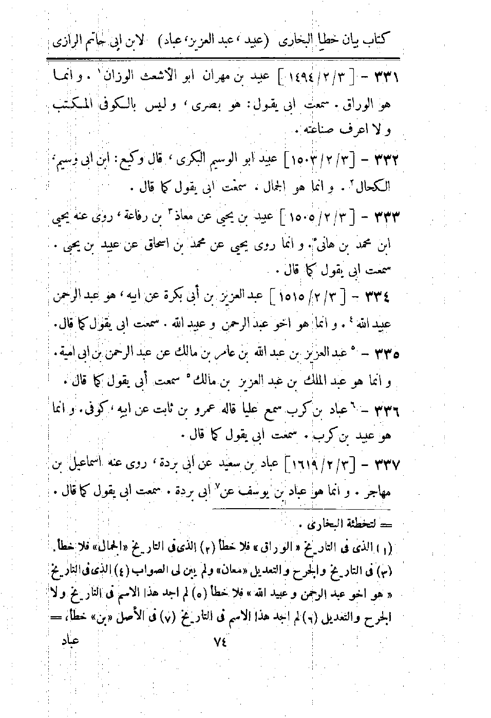 (3) في التاريخ والجرح والتعديل " معان " ولم يبن لى الصواب (4) الذى في التاريخ " هو اخو عبد الرحمن وعبيد الله " فلا خطأ (5) لم اجد هذا الاسم في التاريخ ولا الجرح والتعديل (6) لم اجد هذا الاسم في التاريخ (7) في الاصل " بن " خطأ، = (*)