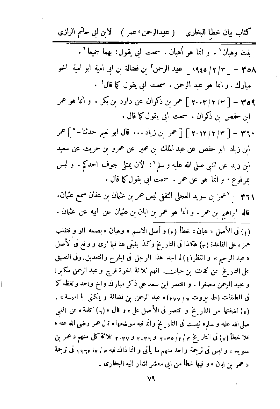 همزة على القاعدة (3) هكذا في التاريخ وكذا ينبغى هنا فيما ارى ووقع في الاصل " عبد الرحيم " وانتظر (4) لم اجد هذا الرجل في الجرح والتعديل.