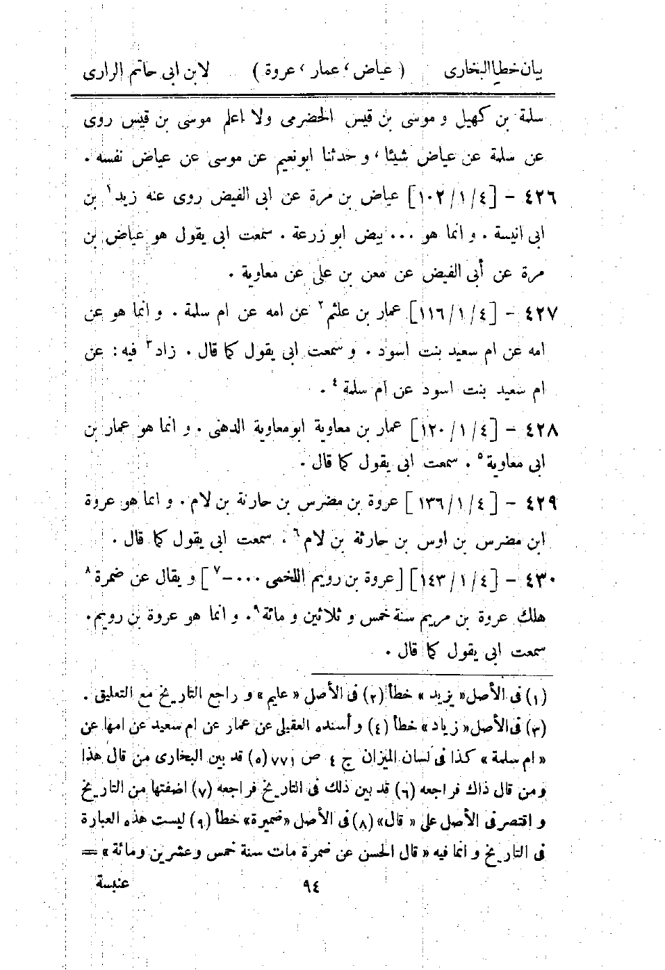 430 -[4 / 1 / 143] [عروة بن رويم اللخمى..- (7) ] ويقال عن ضمرة (8) هلك عروة بن مريم سنة خمس وثلاثين ومائة (9) .