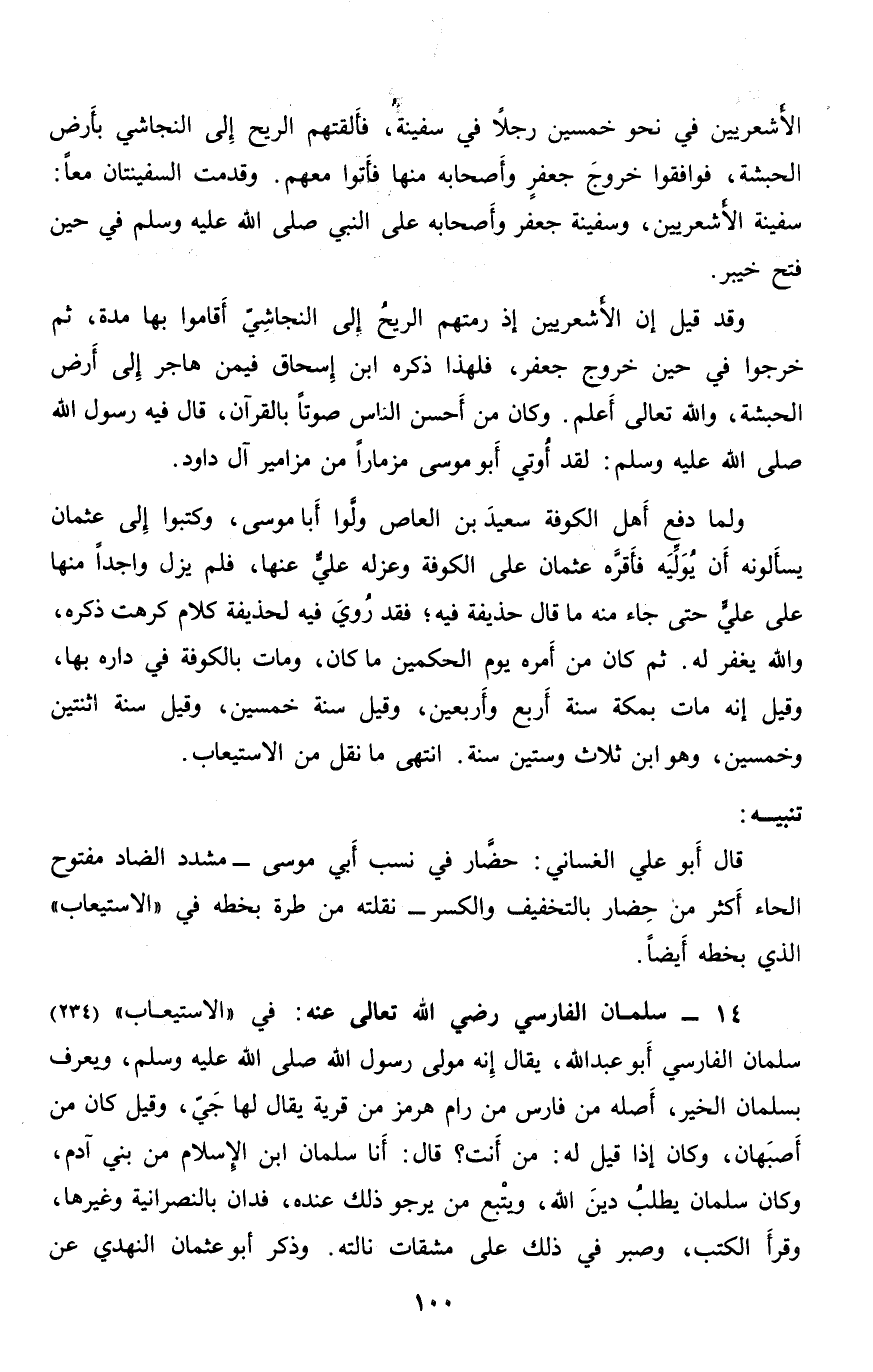 وقد قيل إن الأشعريين إذ رمتهم الريح إلى النجاشيّ أقاموا بها مدة، ثم خرجوا في حين خروج جعفر، فلهذا ذكره ابن إسحاق فيمن هاجر إلى أرض الحبشة، والله تعالى أعلم. وكان من أحسن الناس صوتا بالقرآن، قال فيه رسول الله صلى الله عليه وسلم: لقد أوتي أبوموسى مزمارا من مزامير آل داود.