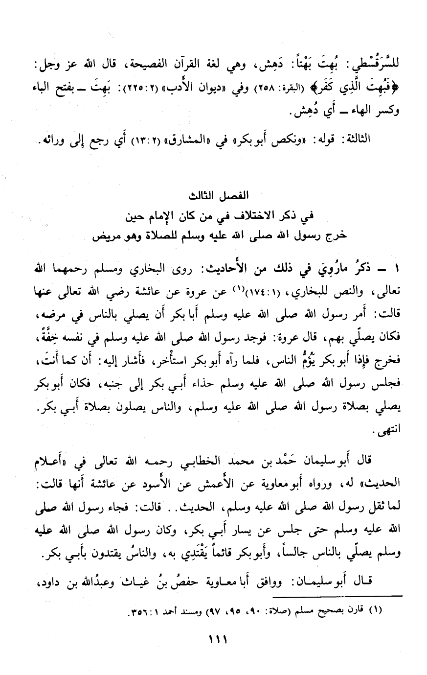 الفصل الثالث في ذكر الاختلاف في من كان الإمام حين خرج رسول الله صلّى الله عليه وسلم للصلاة وهو مريض