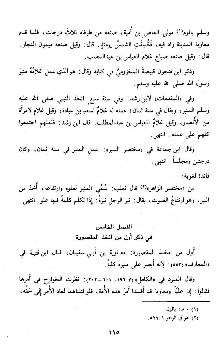الفصل الخامس في ذكر أول من اتخذ المقصورة