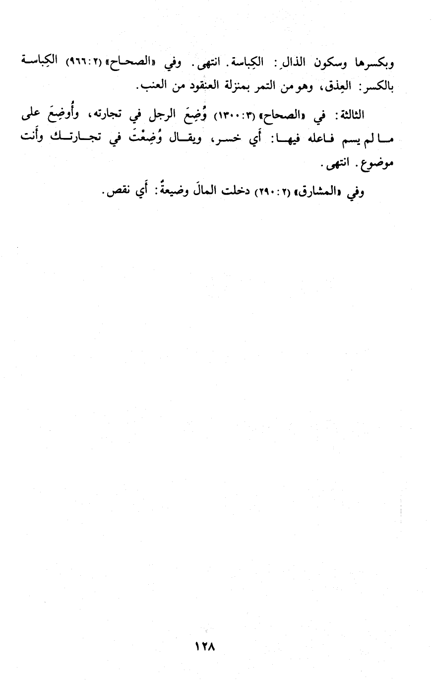الثالثة: في «الصحاح» (3: 1300) وضع الرجل في تجارته، وأوضع على ما لم يسم فاعله فيها: أي خسر، ويقال وضعت في تجارتك وأنت موضوع. انتهى.