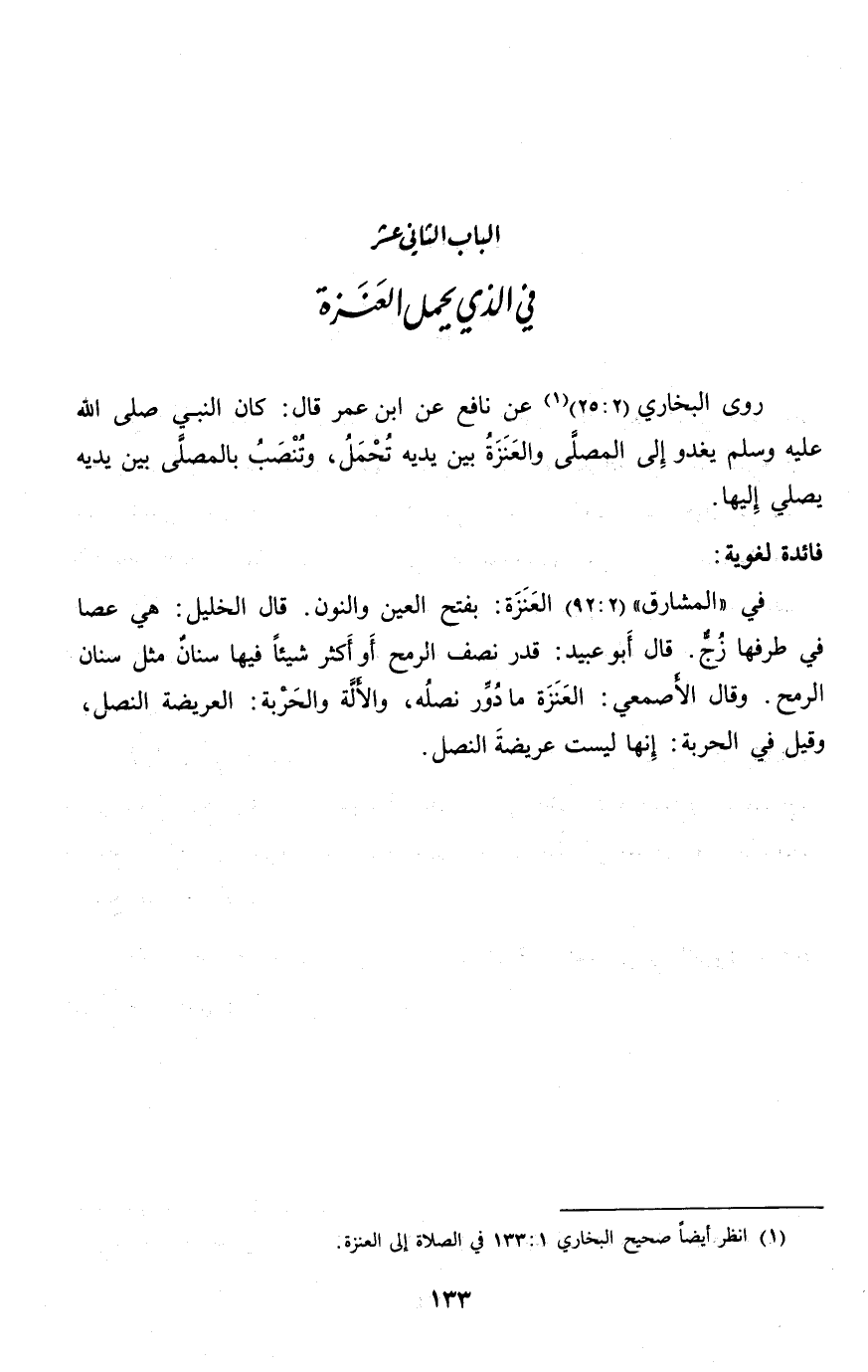 (1) انظر أيضا صحيح البخاري 1: 133 في الصلاة إلى العنزة.