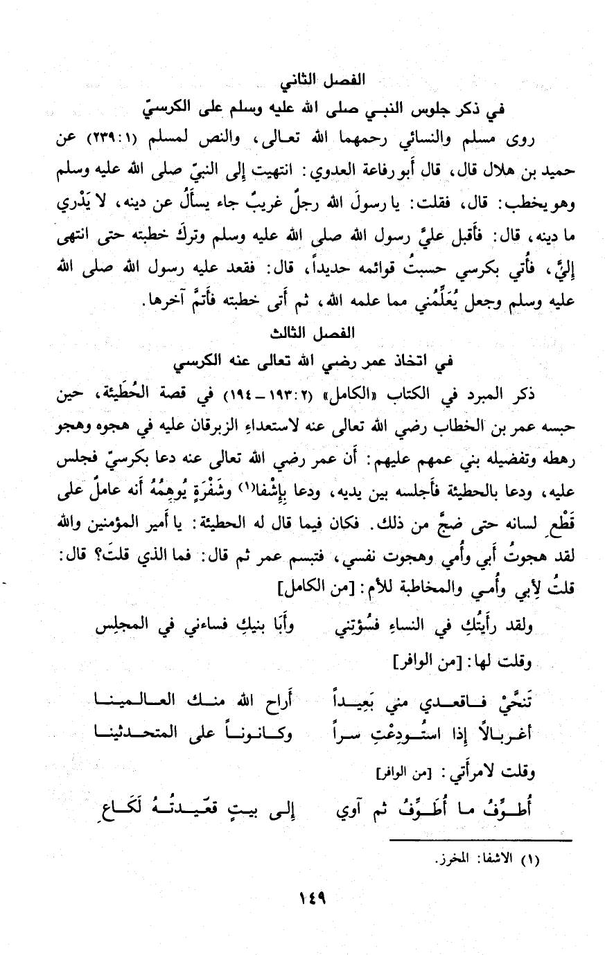 الفصل الثالث في اتخاذ عمر رضي الله تعالى عنه الكرسي