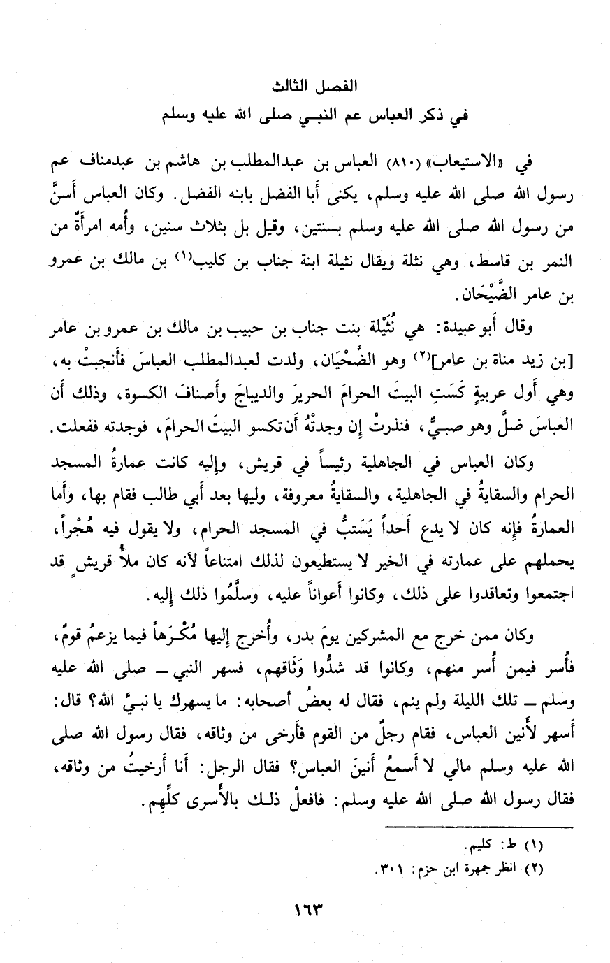 الفصل الثالث في ذكر العباس عم النبي صلّى الله عليه وسلم