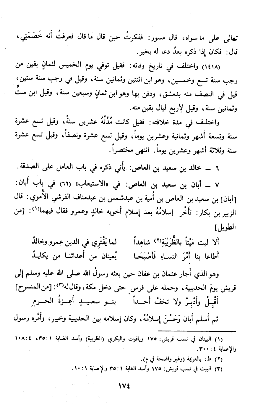 [أبان] بن سعيد بن العاص بن أمية بن عبد شمس بن عبد مناف القرشي الأموي: قال الزبير بن بكار: تأخّر إسلامه بعد إسلام أخويه خالد وعمرو فقال فيهما «1» : [من الطويل]